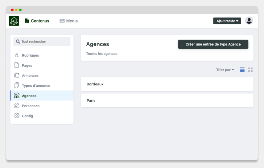 La solution vous permet de créer votre agence mais aussi d’en créer plusieurs si nécessaire. Vous pourrez ainsi présenter clairement tous les informations nécessaires et les contacts pour vous joindre.
